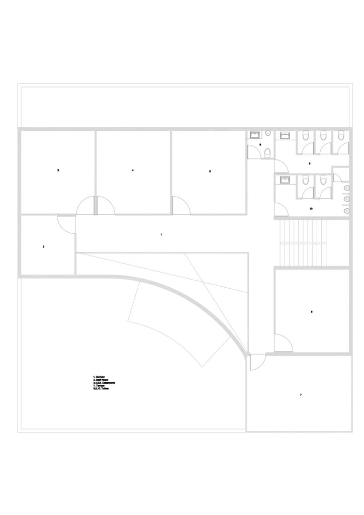 Built on child-centric planning, the school’s spatial layout considers the scale and comfort of its young users—lower sill heights, soft corners, shaded zones, and visual openness for easy supervision. The central entry acts as a welcoming threshold, guiding students into learning spaces designed for both individual focus and collaborative discovery.
