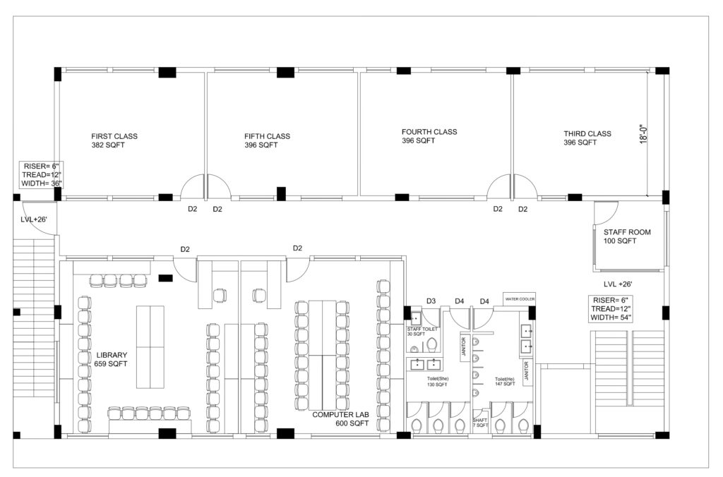 Functional features like a dedicated bus bay, landscaped play zones, and efficient circulation spaces make it a safe, vibrant, and future-ready educational environment.