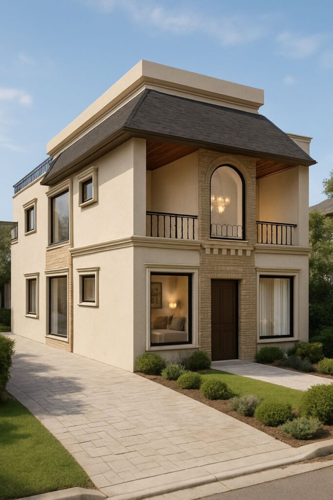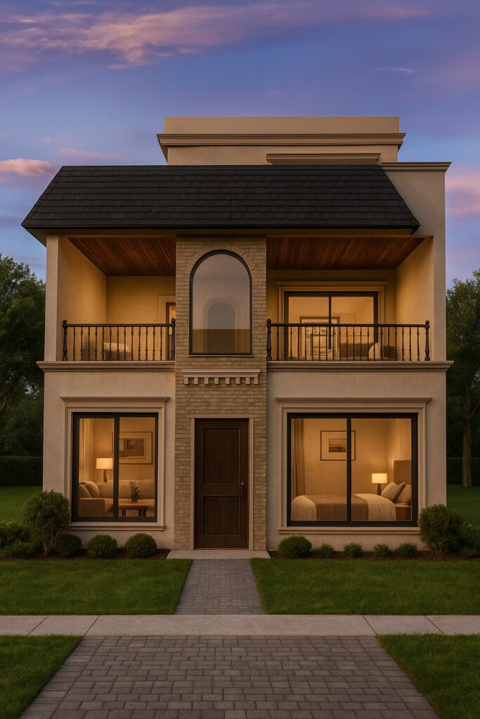 A Modern Classical Residence: 3200 Sq. Ft. of Refined Living. Designed as a statement of balanced elegance, this 3200 sq. ft., 2.5-storey residence is home to a family of four. The architectural language gracefully merges classical symmetry with modern detailing—resulting in a timeless structure that feels both grand and grounded.